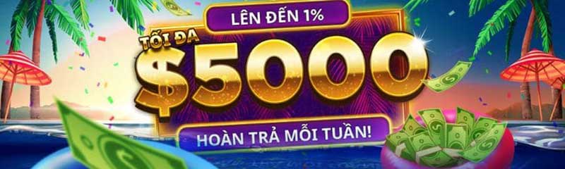 Bên cạnh mức thưởng siêu khủng từ mọi dịch vụ đặc sắc tại cổng game thì người chơi từ ưu đãi này cũng có thể rủng rỉnh nhận thêm mức tiền hoàn với % thưởng siêu “mlem” lên đến 5000 USD mỗi tuần.